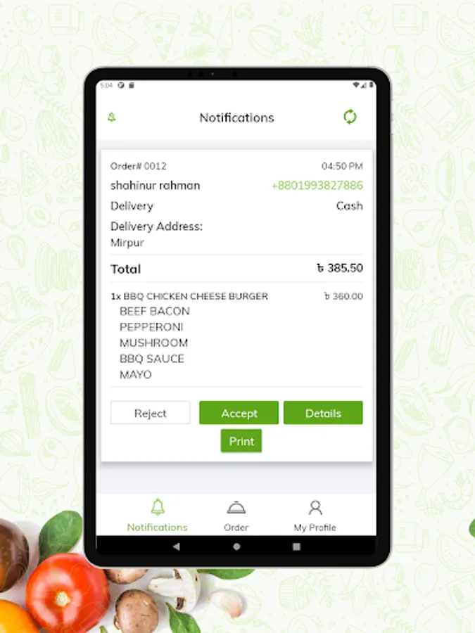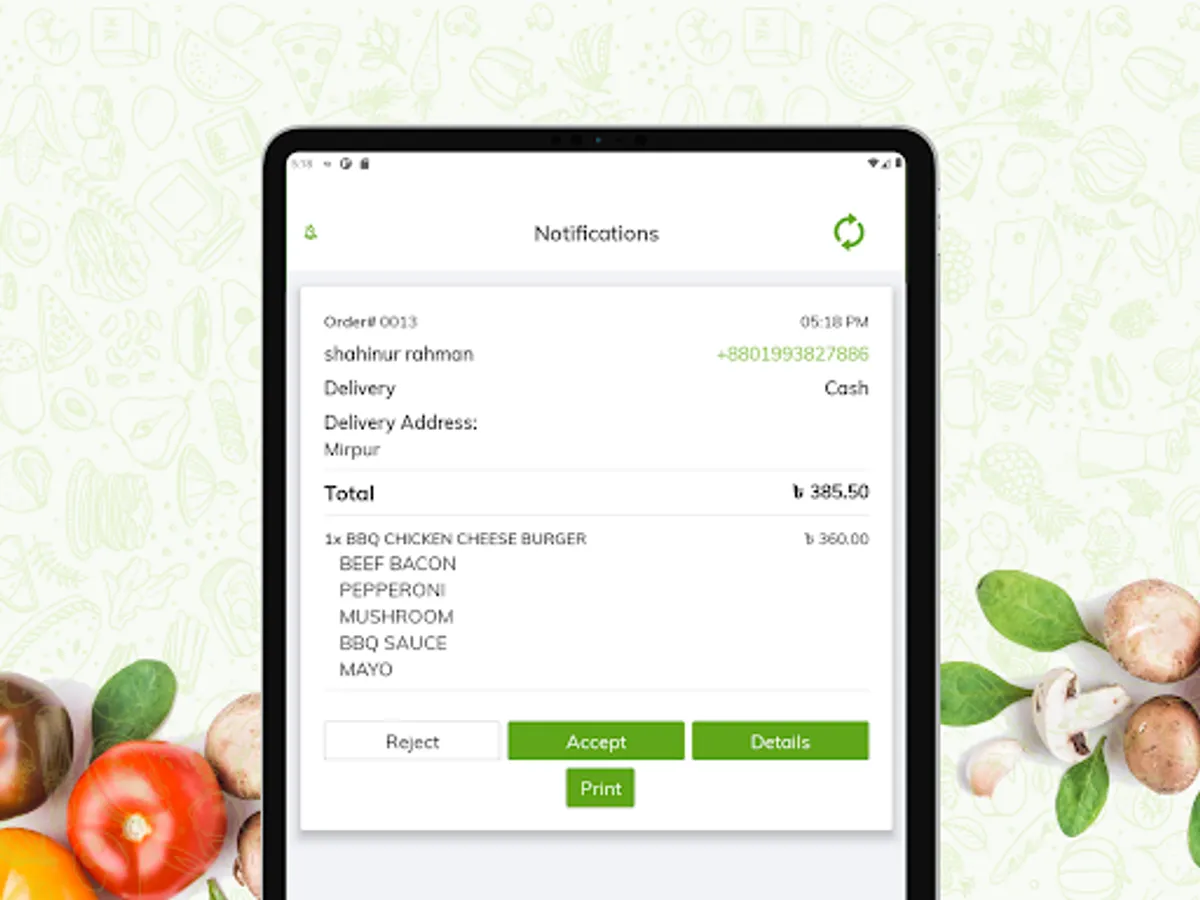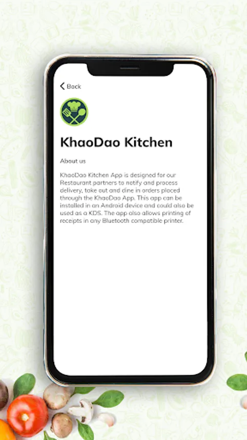 KhaoDao Kitchen App is designed for our restaurant partners to notify and process delivery, take out and dine in orders placed through the KhaoDao App. This app can be installed in an Android device and could also be used as a KDS. The app also allows printing of receipts in any Bluetooth compatible printer.
