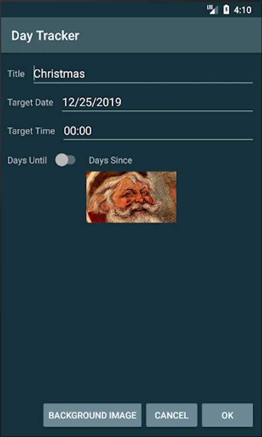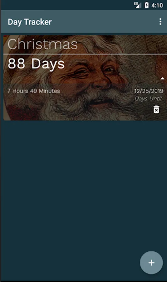 Day Tracker displays the days, hours and minutes until an event, or since an event has occurred. Events can be edited or deleted as needed.