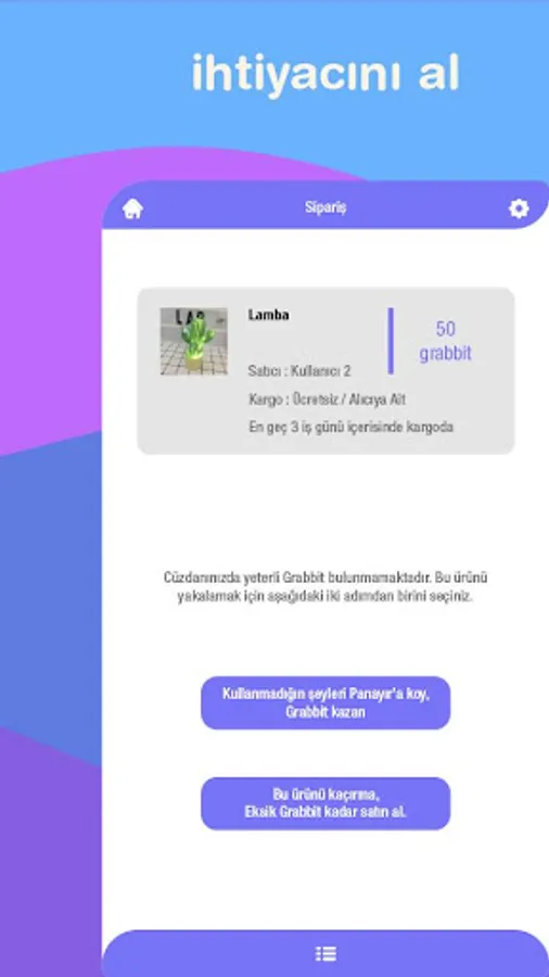 *** grabbit is the system-specific point unit in the application and all purchases are made via grabbit. It is not possible to convert the grabbits in the wallet to money, but if there is not enough grabbit in your wallet for the product you want to buy, you can purchase grabbits.