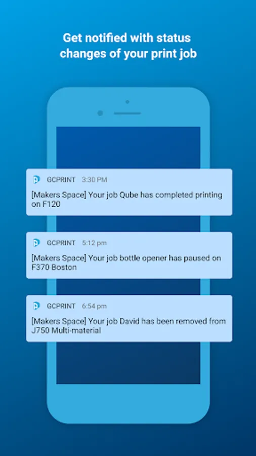 1. No longer worry about machines unexpectedly stopping or being idle for many hours. They will be notified when a print job is complete or unexpectedly pauses.