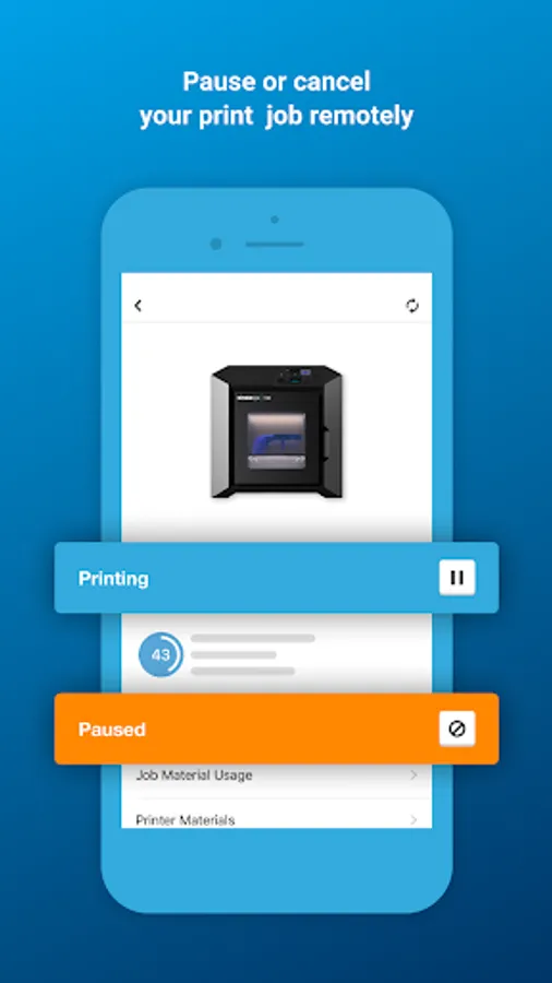 4. Remotely stop an active print job, if they are away from the machine (Enabled for new gen FDM Printers like F120, F170, F270, F370 and PolyJet machines).