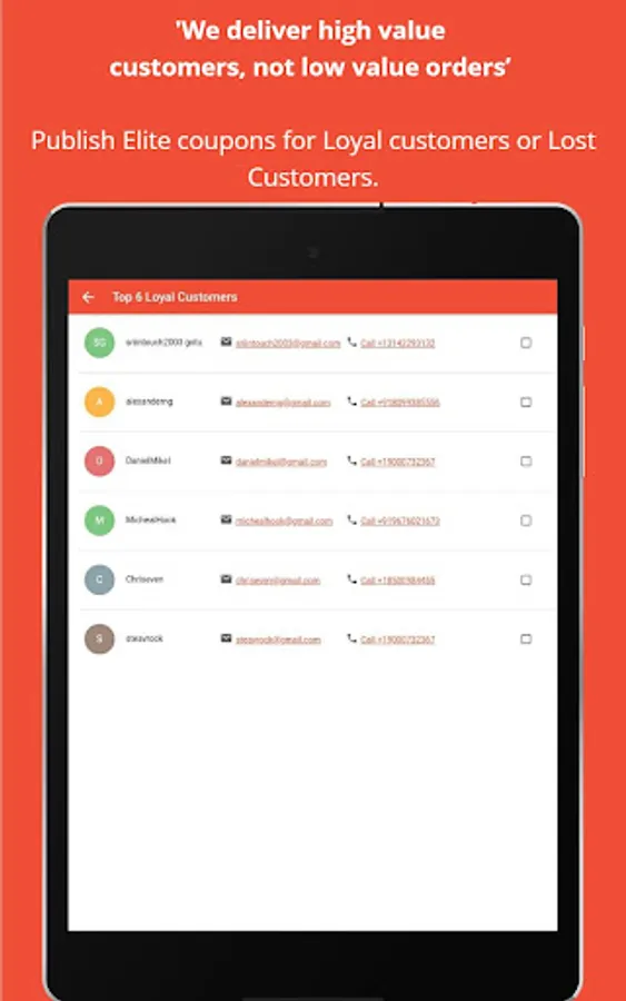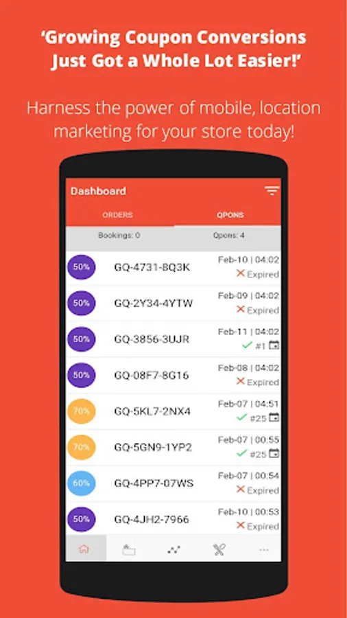 Track orders and customers usage in real time through the GQ dashboard. Access customers data, track loyalty, and publish personalized coupons to create a tribe of loyal and engaged customers!