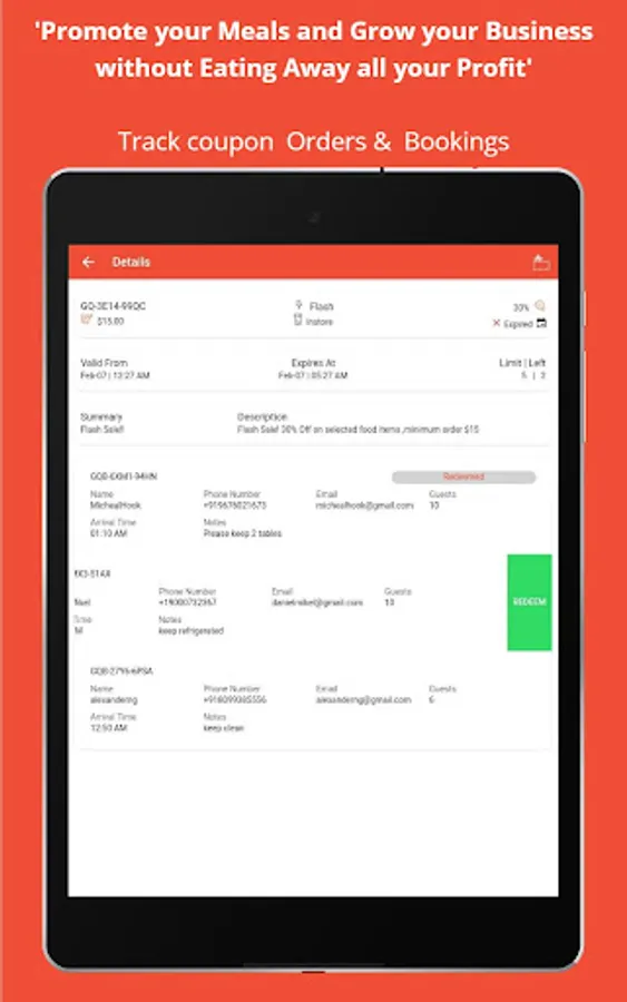 If you need to fill empty tables or promote specials, simply schedule or publish a “flash/special sale” in less than 60 seconds.