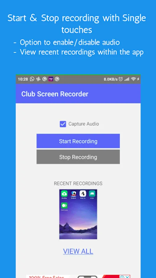 Club Screen Recorder is a simple screen recorder with optional audio recording.