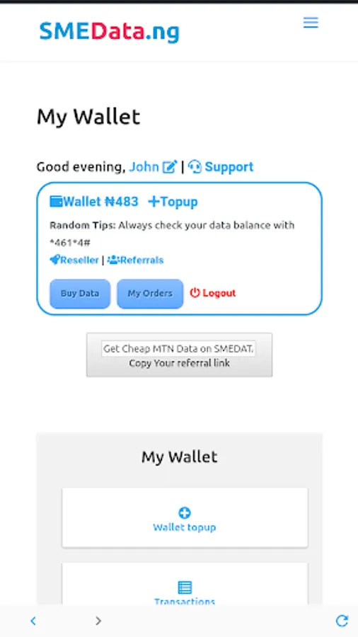 Pricing: 270 Naira/GB, Resellers 240 Naira/Gb, API 238 Naira/GB