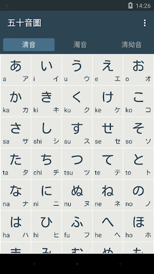 Material Gojuon is a style of Japanese syllabary mnemonic software.