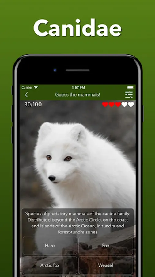 Guess all the wild animals in the pictures and description! Test your knowledge in the free zoology app!