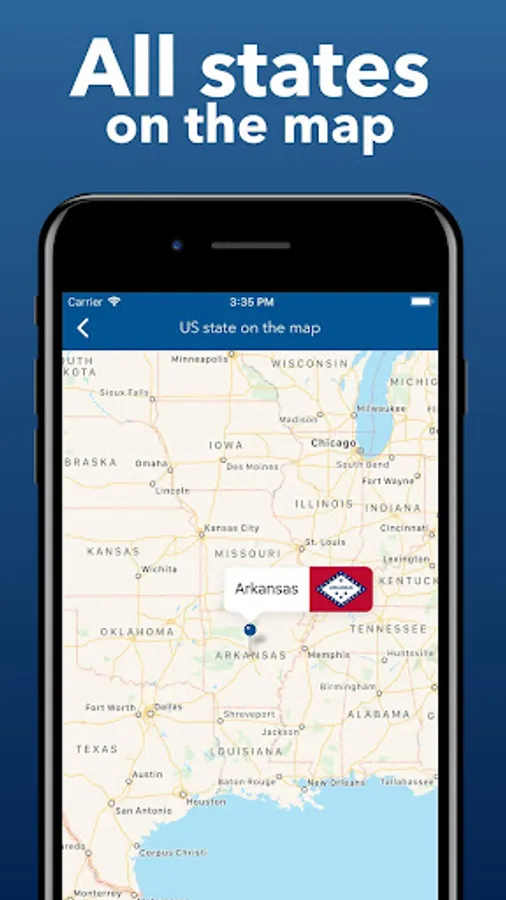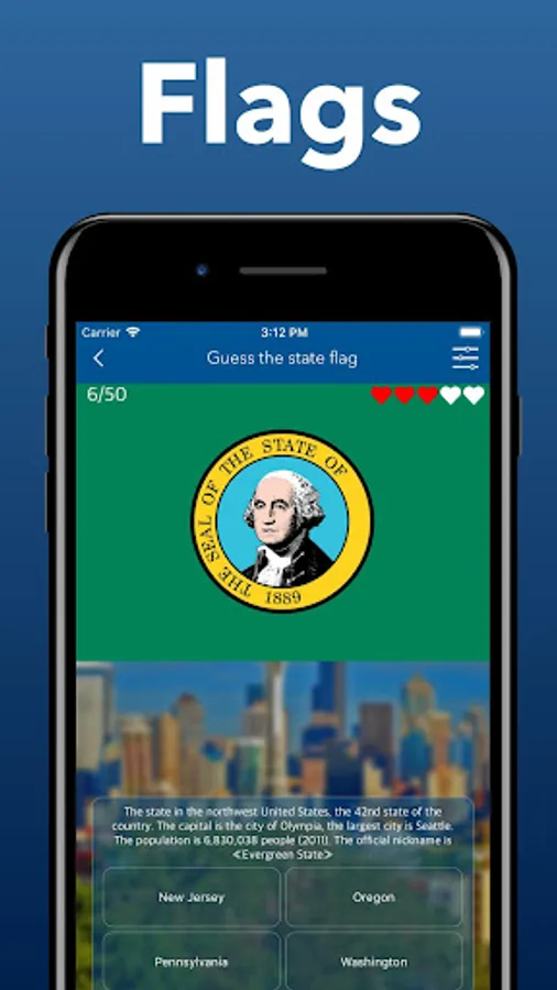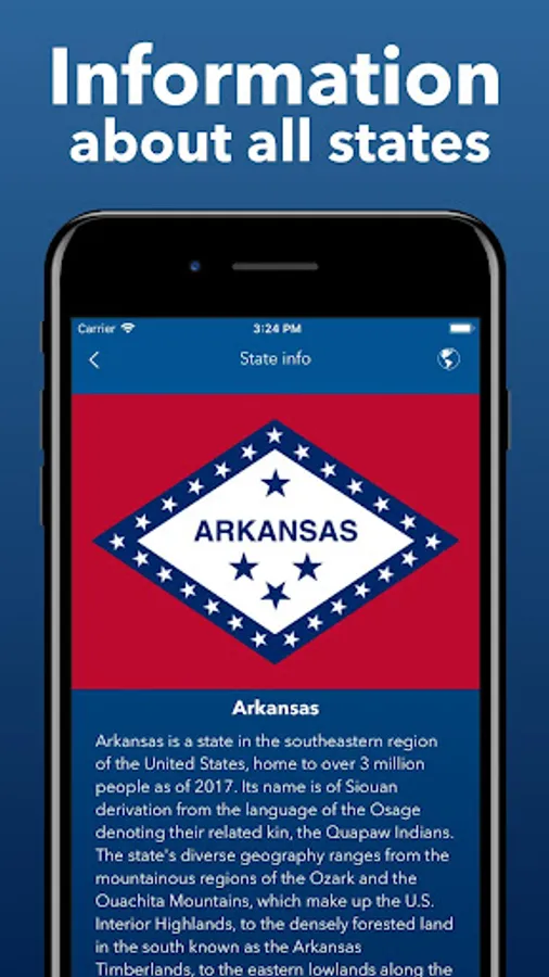 A great application for everyone who studies the geography of America, in particular, maps and flags of the USA. Take the test to the end! Test your knowledge of American history! Discover states and capitals!
