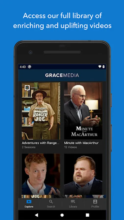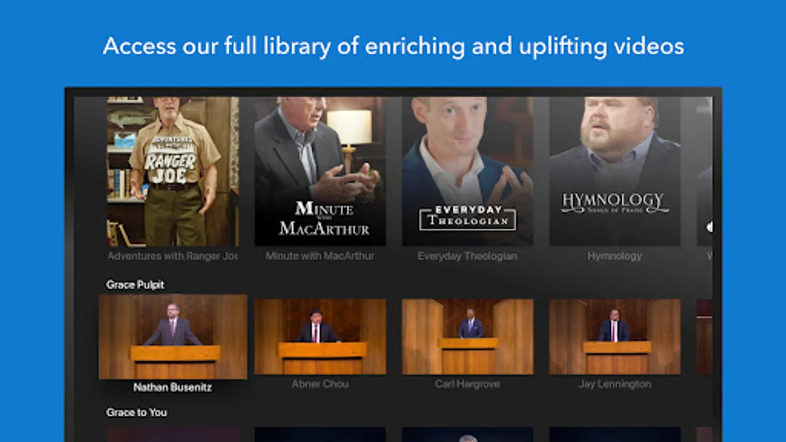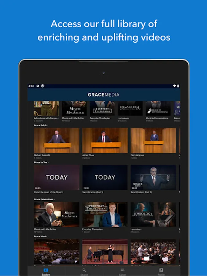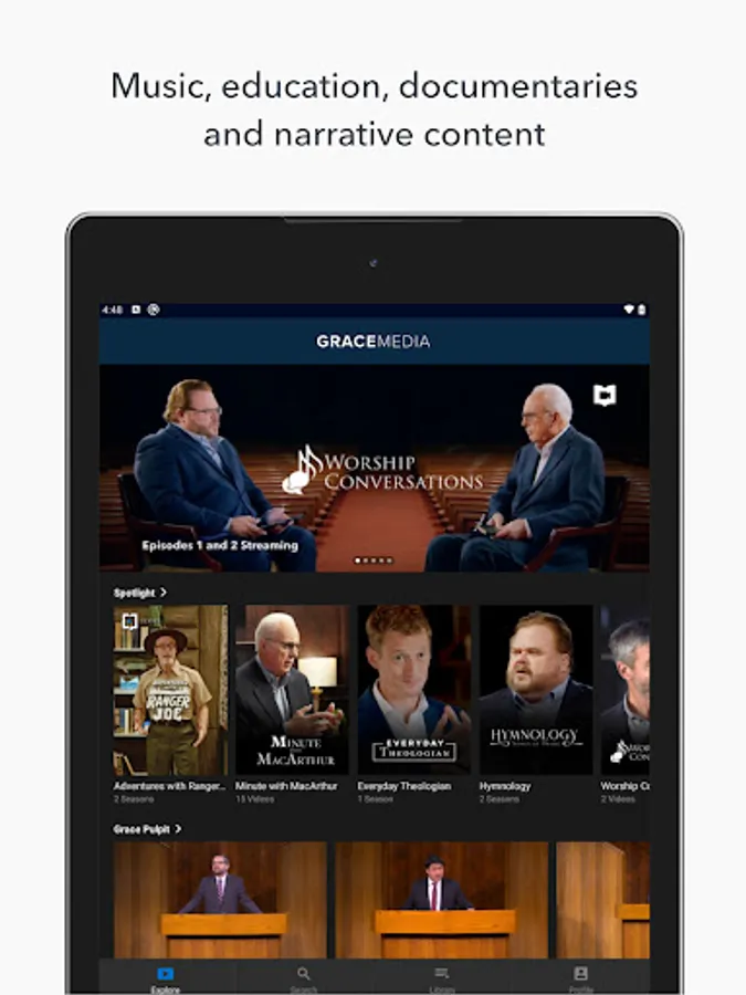 Grace Media is a streaming app that brings you biblical and theologically sound music, education, documentaries, and narrative through videos. Our mission is to cultivate and produce media resources of the Church into superior content that glorifies God and to further His kingdom. With the beginning focus of our video being educational tools to support our curriculum users, we were given opportunities to create unique narrative content as well as partner with other like-minded organizations to continue to expand our content and platform. It is through your support and the support of our annual members that we can continue to bring you content that will enrich and uplift your lives ultimately bringing you closer to God.
