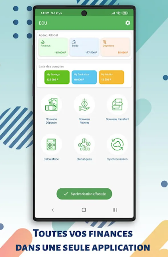 ECU is here to keep an eye on all your financial activities. An entry of money; additional fees; recurring expenses? ECU simplifies your daily task so that you can make the right decisions the next day.
