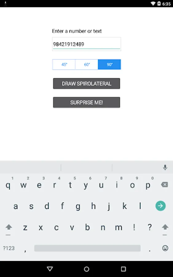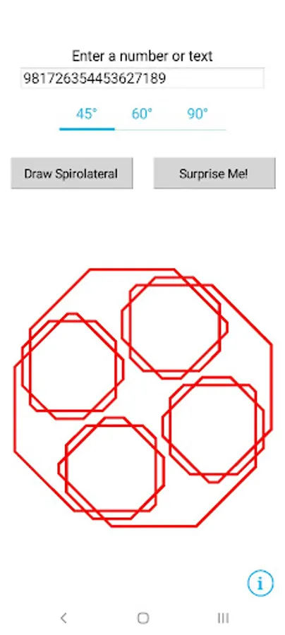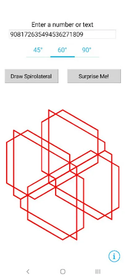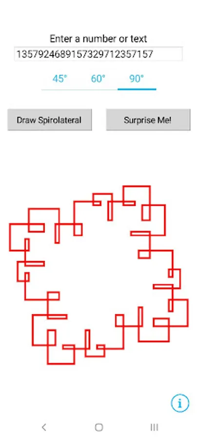You can create your own spirolaterals by entering a number or text like your name. Or you can explore the gallery of 80 spirolaterals by tapping Surprise Me!