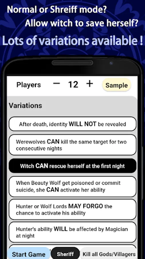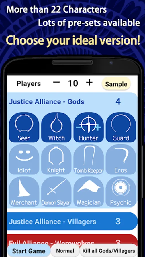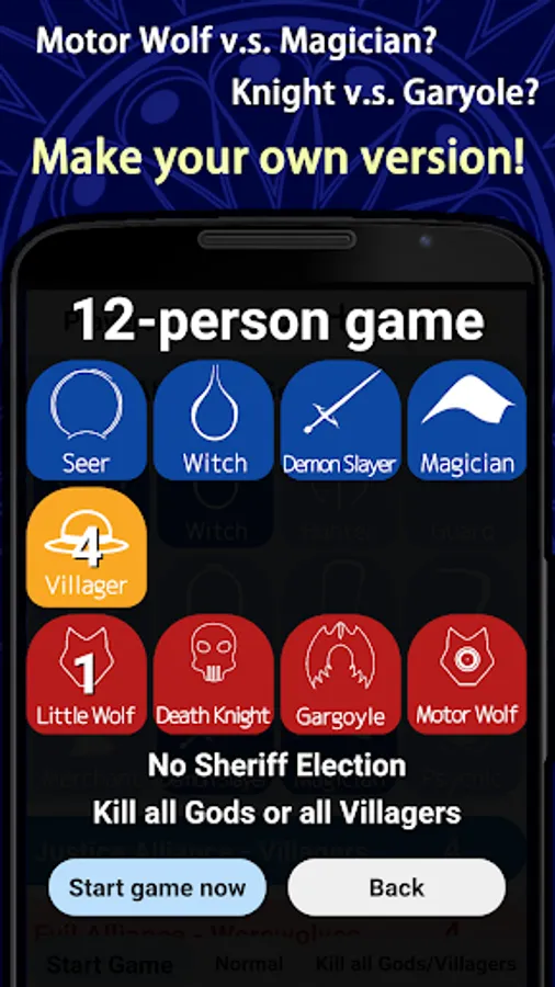 ▪ "Make your own version": You can include any type of werewolves and gods into your own designed game