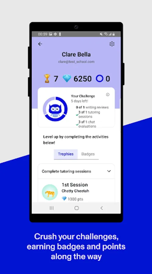 As you work with tutors on the Paper app, you’ll complete challenges, gain points, and earn badges and trophies.