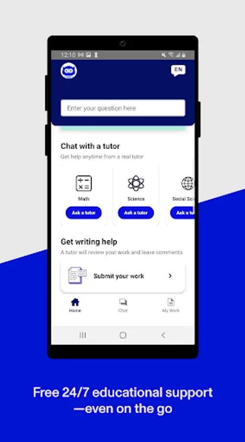 Get connected with tutors who speak English, Spanish, French, or Mandarin to work through questions in any subject.