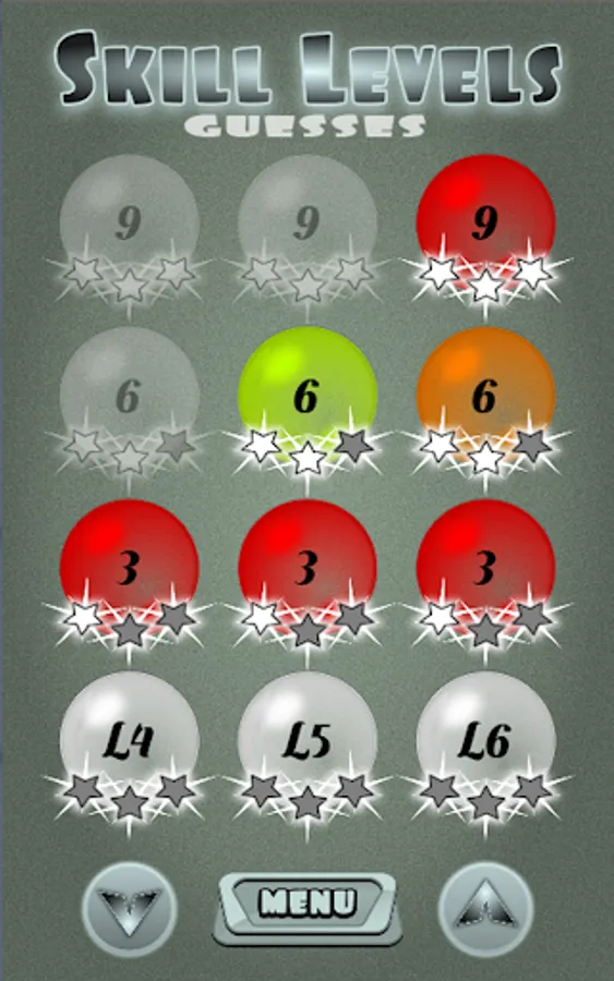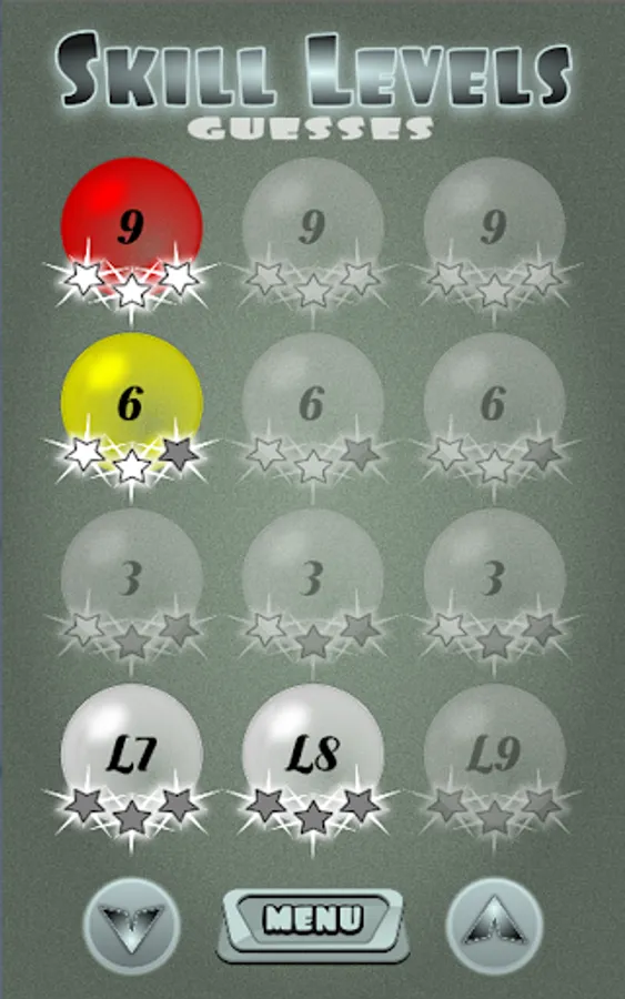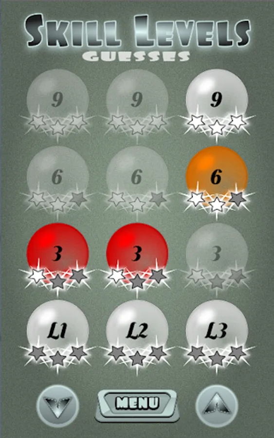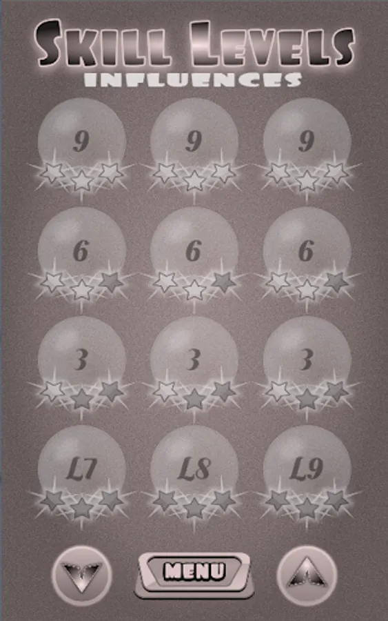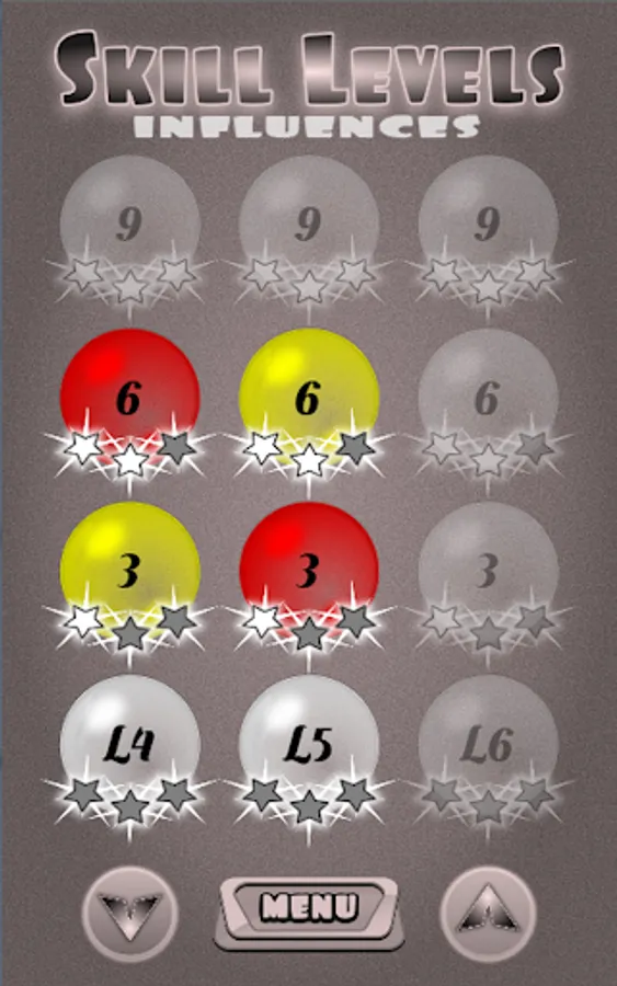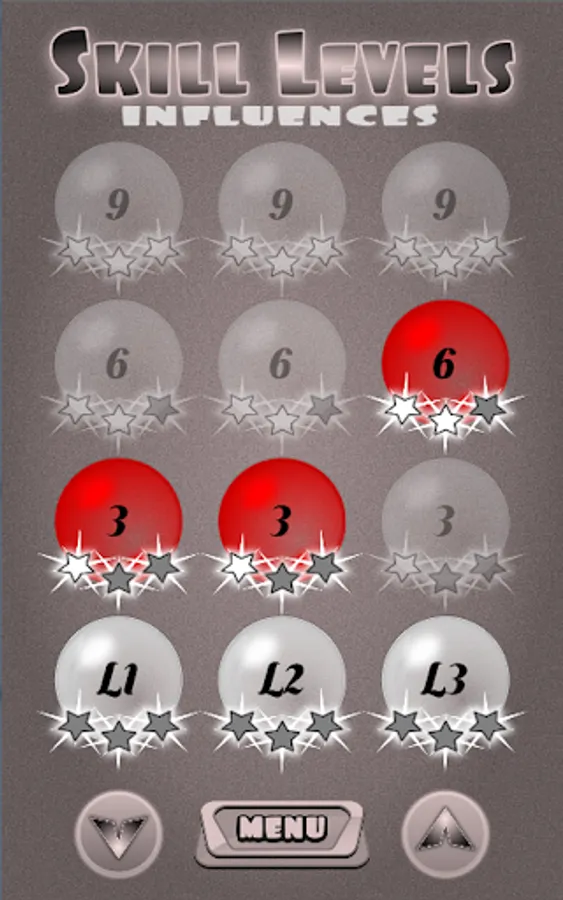 Each level has 3 skills - 1-Star for 3 rights, 2-Stars for 6 rights & 3-Stars for all 9 correct guesses / influences.