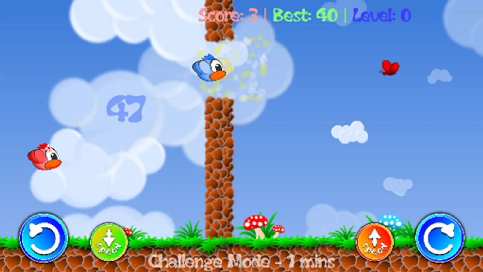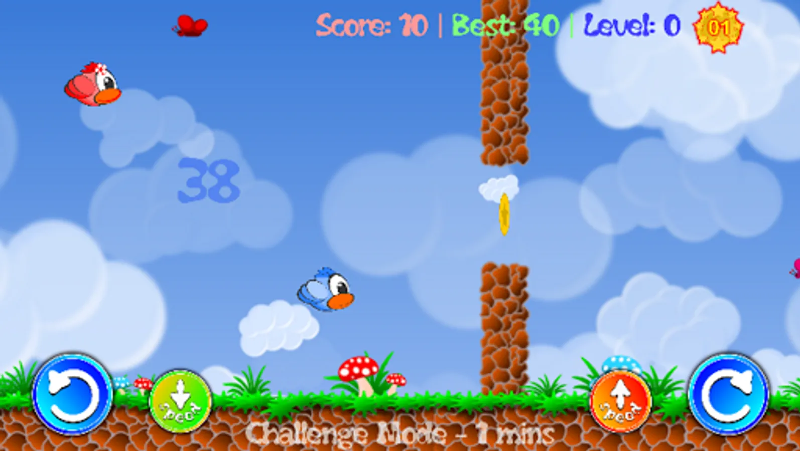 The game speed is totally in your hands. Increase or decrease it, as you feel comfortable flying the birds between the pillars. Its thrill to play with speed control in your hands.