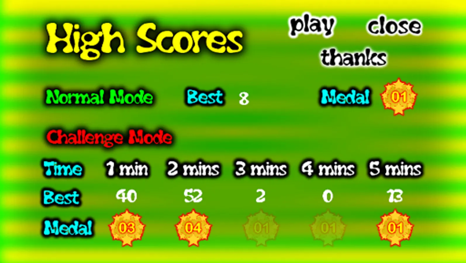 Play on, challenge your maximum score with a new high score every time. Earn higher medals as you cross newer milestones.