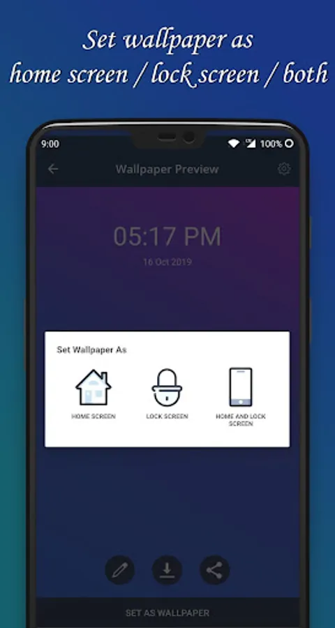 Gradient Wallpapers app supports both Homescreen & Lockscreen of your smartphone.
