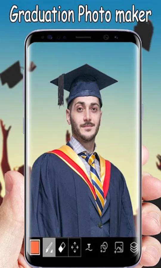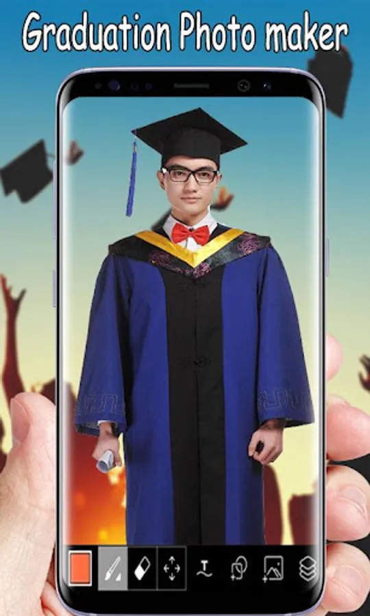 This amazing graduation photo frame free app is here for you. Graduation photo frame don't need any effort with details, just select you picture adjust it for the suit and voila you are done. Save it and share the photo with your friends and family members. This graduate photo editor has unique features which other graduation photo editors lack.