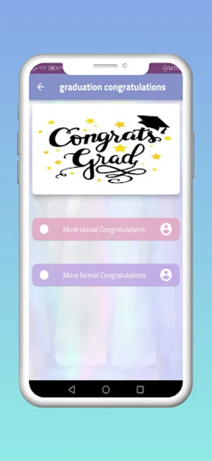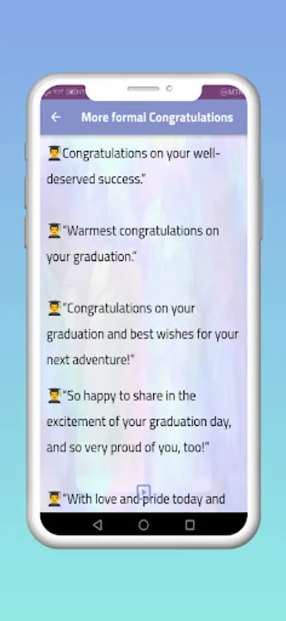 Graduation congratulations: The application contains a large collection of Graduation congratulations. Graduation congratulations can be sent to family, friends, or even co-workers. Graduation congratulations give a feeling of love between people.