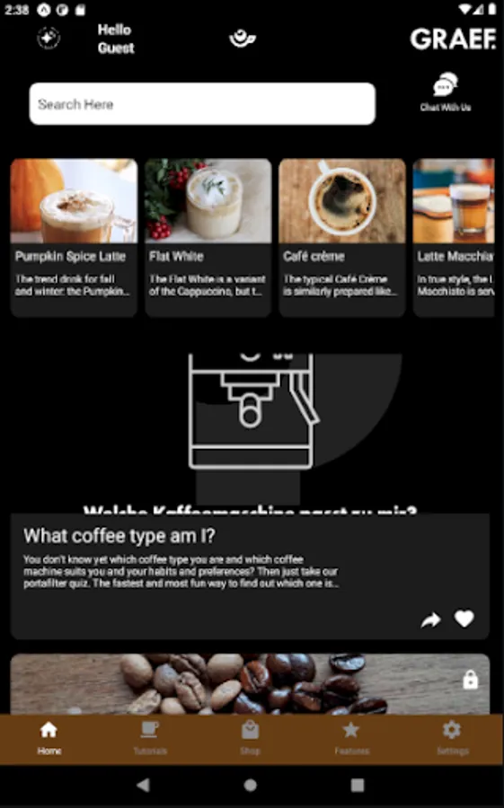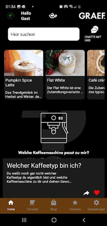 Über unseren GRAEF Webshop kannst du nicht nur unsere Siebträgermaschinen und Kaffeemühlen kaufen, sondern deine Lieblingskaffeebohne von Caffè Moak nachbestellen, praktisches Zubehör entdecken oder natürlich dein erstes Maschinen-Set-up zusammenstellen.