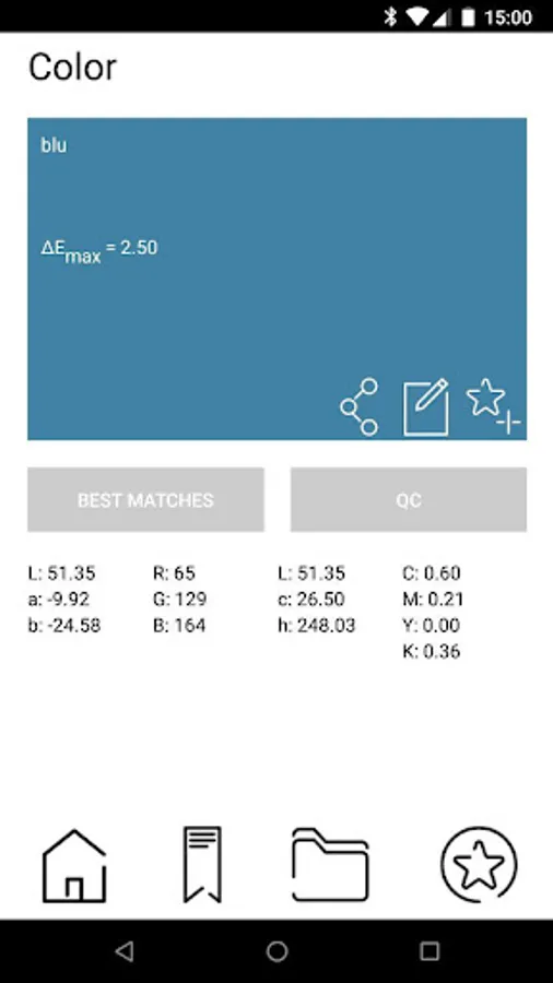 App has a “Palette” section where you can save custom colors, divide in folders. This allows to categorize colors and simplifies the quality control (QC) function.