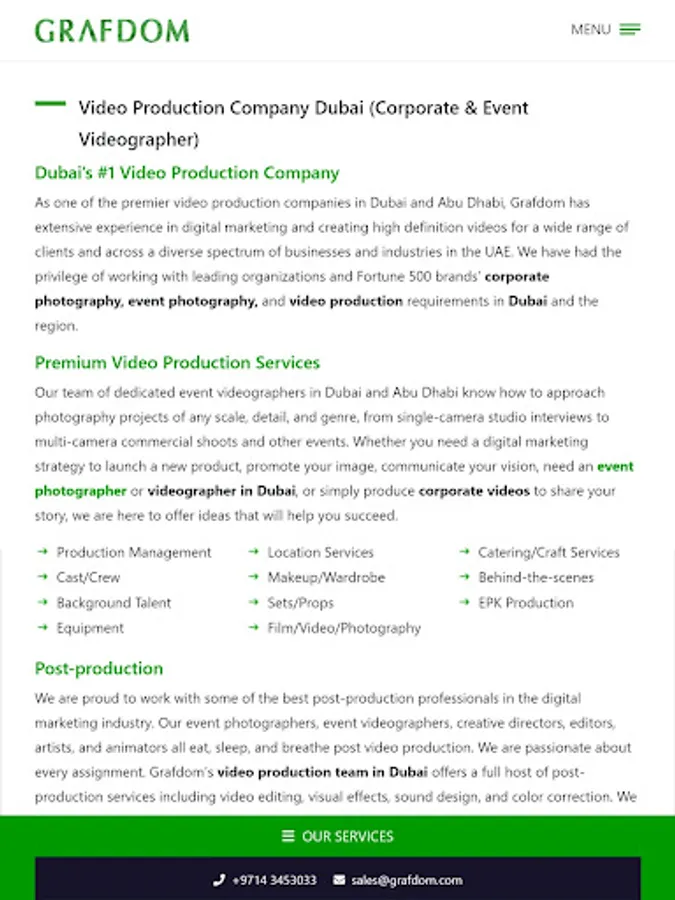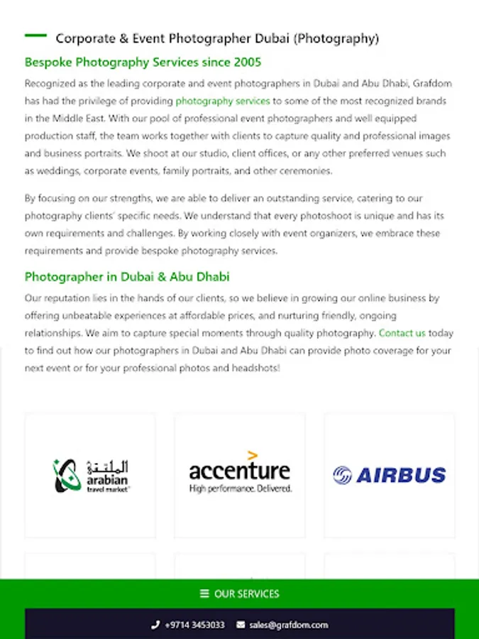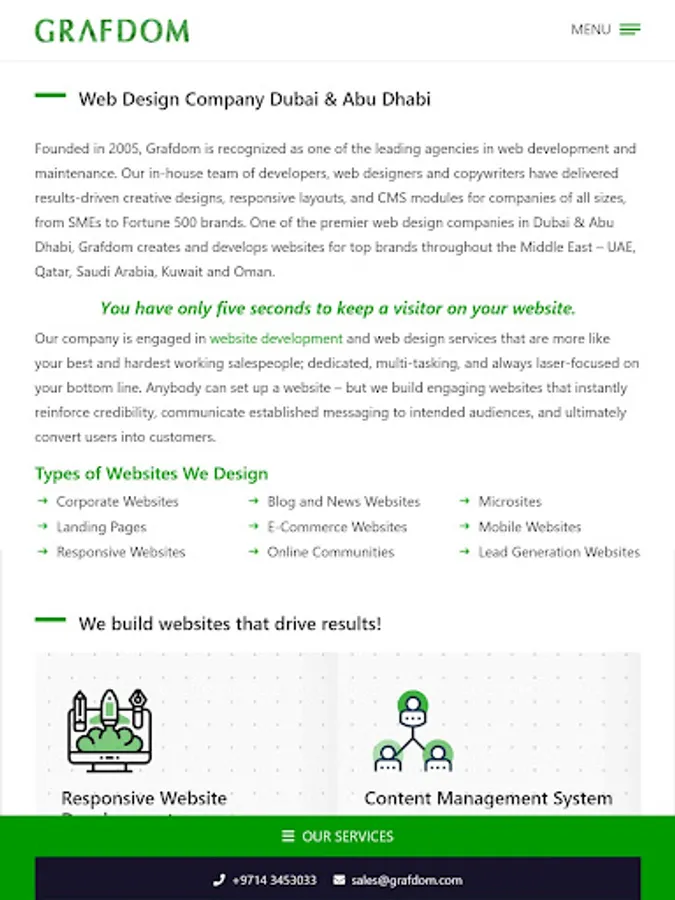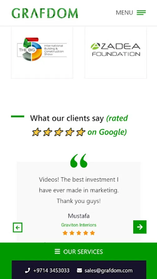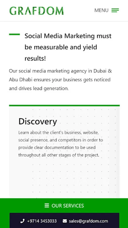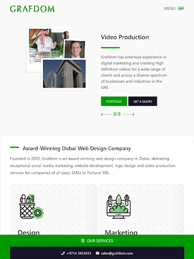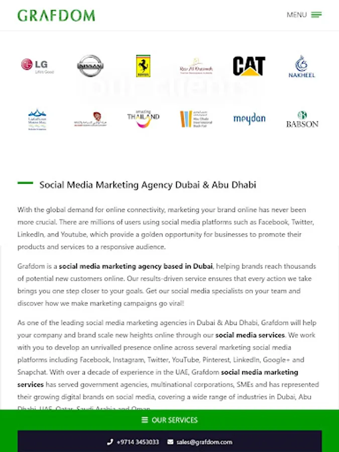 Grafdom is one of the leading digital media agencies in the Middle East with expertise in Web Design, Social Media & Mobile Apps. The agency designs dynamic websites, manages social media networks, develops mobile apps and provides robust hosting solutions for some of the most recognized brands in the region. Grafdom has been instrumental in the successful execution of campaigns for companies of all sizes in Dubai, Abu Dhabi, Doha, Riyadh, Jeddah and Kuwait.