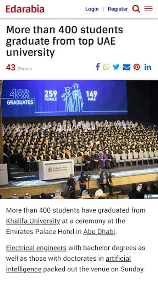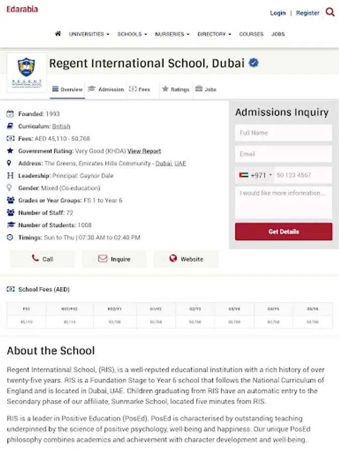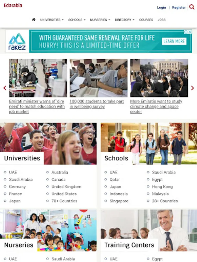 Edarabia.com is the Middle East's #1 Education Guide; helping students, parents and educators compare and select the best institutions. Launched in 2005 (formerly IQEA.org), Edarabia has become a trusted source in the field of education. Visitors to the site can follow the latest industry news, upcoming events, job listings, research studies, compare college ratings and add reviews. Edarabia covers all levels of education including but not limited to universities, colleges, schools, nurseries, language institutes, training academies, music schools and online universities.