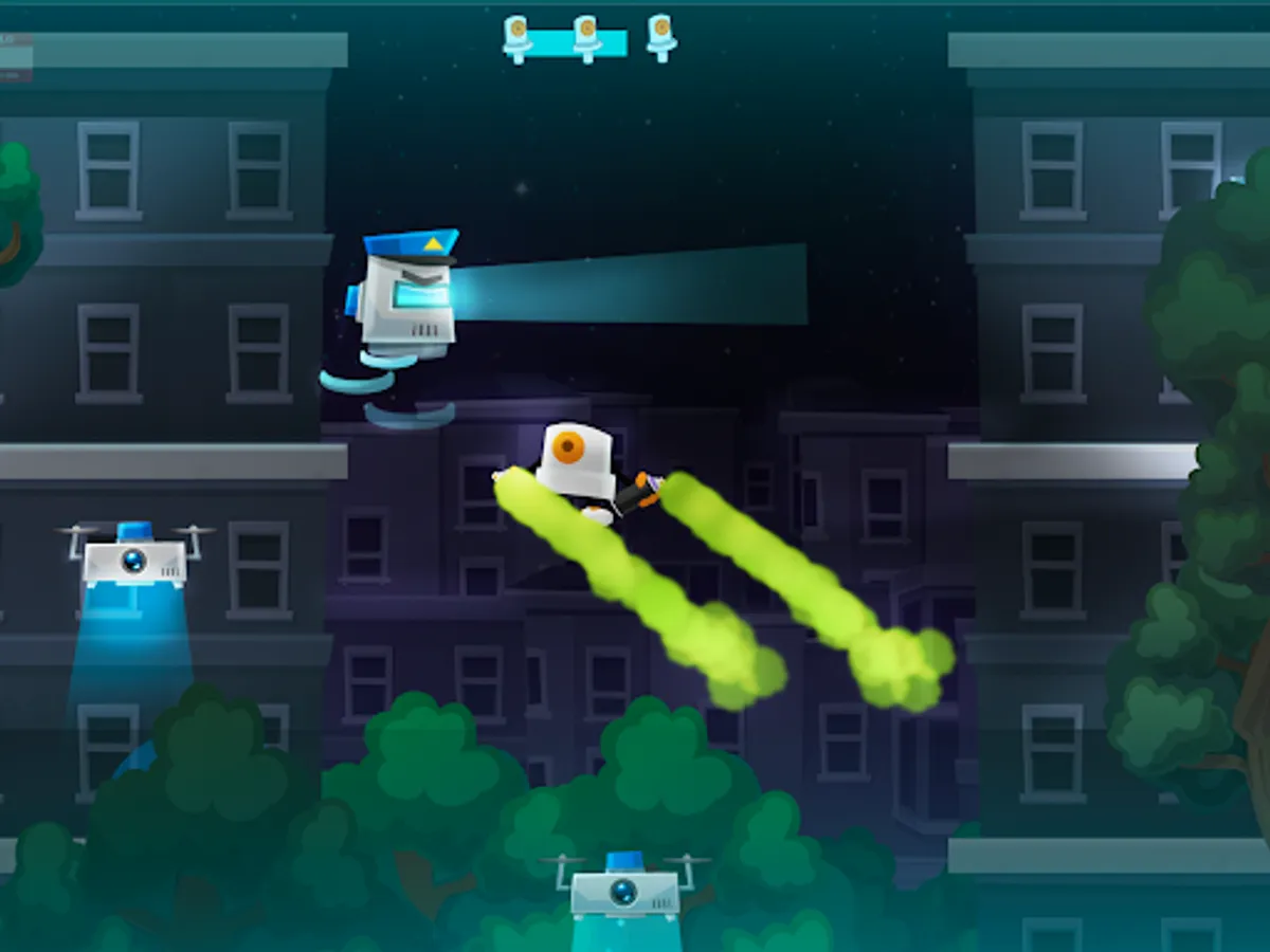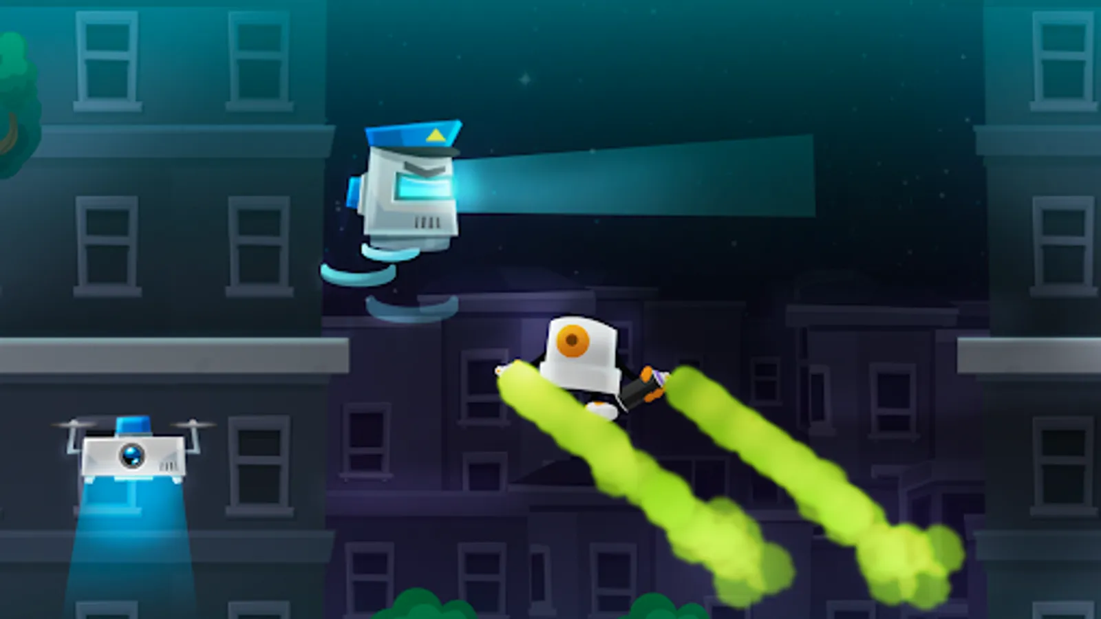 Sneak through the streets to make pieces and tags. Fly over the level to use double jump.