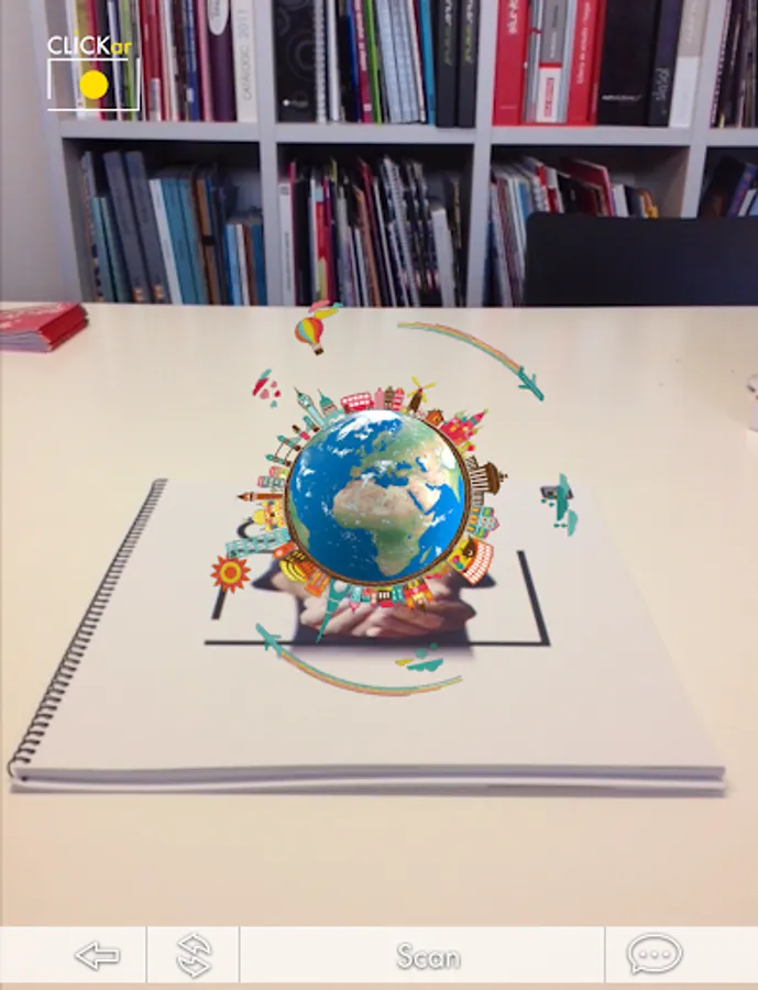 Just scan the printed material with CLICKar through your mobile phone or tablet, this will cause the images that have been augmented with Clickar to become interactive for ease of use.