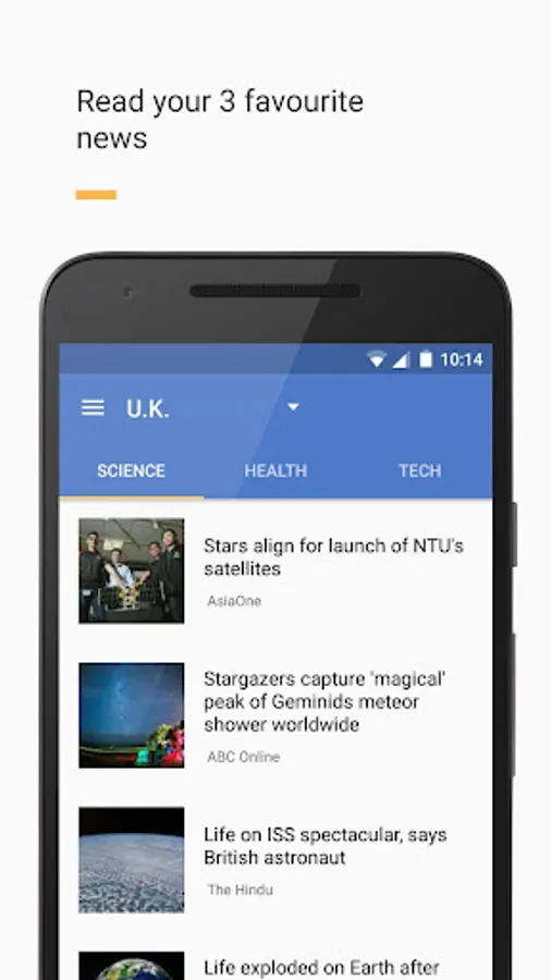 Gives you news from your 3 favorite topics. Tech, science, entertainment, sports, health or business. Pick your 3!