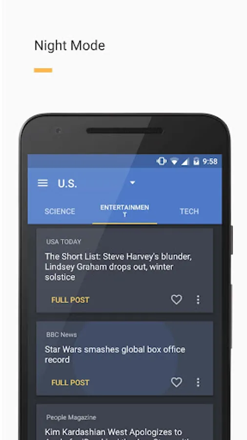 Newslet knows when to enable Night mode, for a better reading experience.