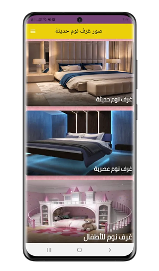 The application contains pictures of new and wonderful bedrooms, as well as types and supplies of modern bedroom pictures. It also includes pictures of bedrooms for married couples and unmarried couples.In addition, it features luxury bedrooms with several types of designs, decorations and furniture. Furthermore, it is characterized by complete ease and does not consume a battery, and you can share it with friends and family on social networking sites.