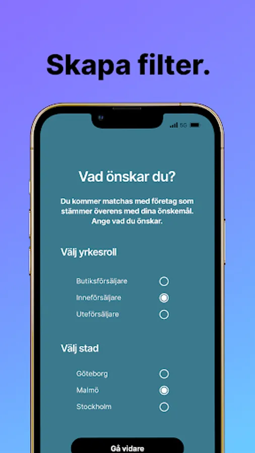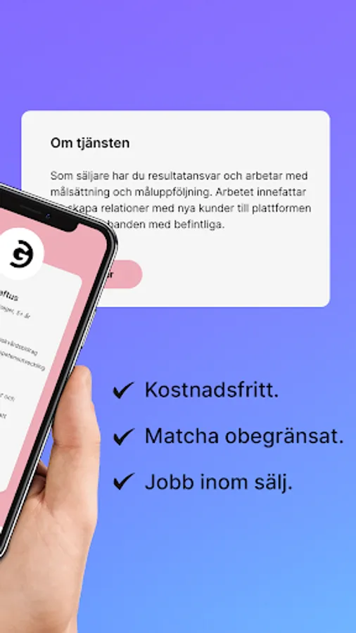 Now it is easy for you as a salesperson to find a job. Download the app and start matching with companies that match your preferences.