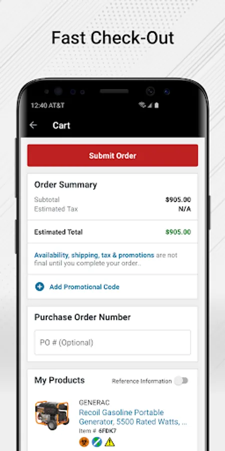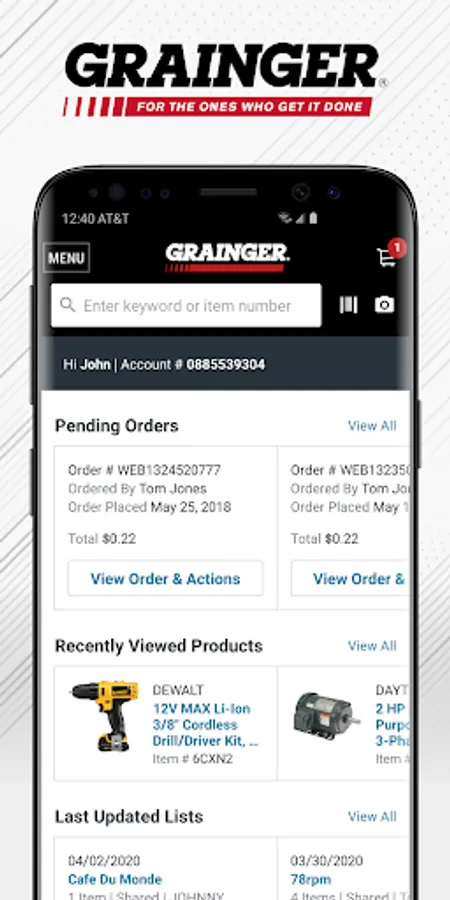 The Grainger® app for Android is designed to deliver all that Grainger has to offer no matter where the job takes you. Use the app to quickly narrow down your search, check account pricing, check item availability at a nearby branch, or manage costs with the Grainger KeepStock® inventory management