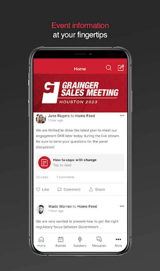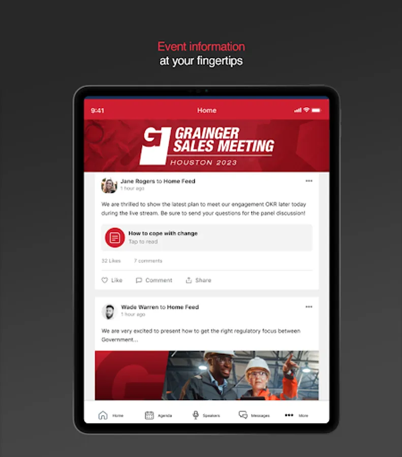 Mobile App for Grainger Events. Grainger believes in the power of connection, and this app allows us to bring our attendees together to share ideas, product innovations, and celebrate relationships.