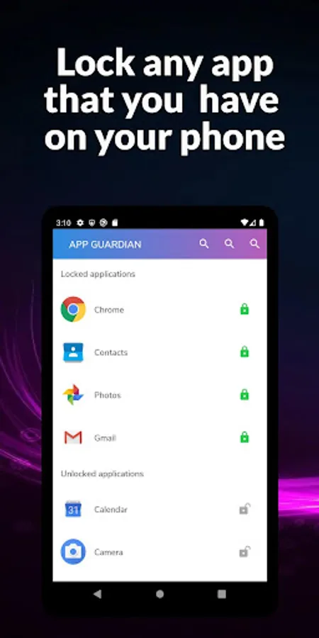 App Guardian let you protect any app with a password, so no one else can access your apps.