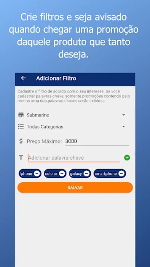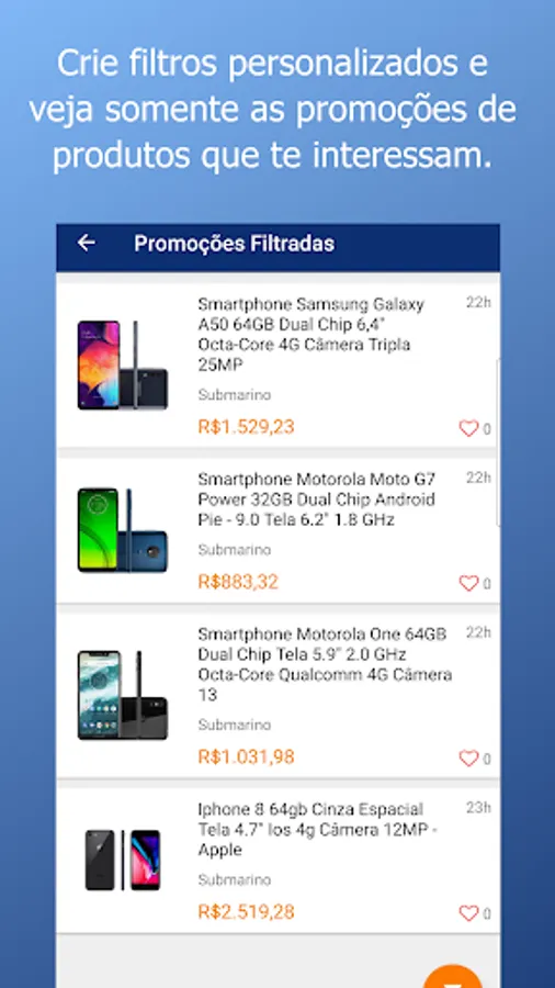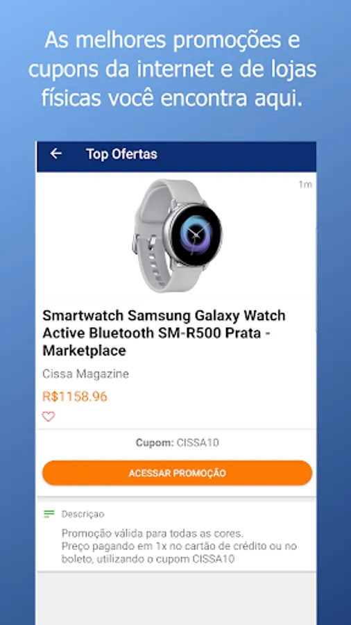 The Top Deals is an app that helps you find the best deals, offers and coupons for online and physical stores. Receive offers from the best stores in Brazil and the world, such as Submarino, Casas Bahia, Dafiti, Americanas, Netshoes, Extra, Ponto Frio, Amazon, Luiza Magazine, Ricardo Eletro, Saraiva, Sou Barato, Steam and much more.