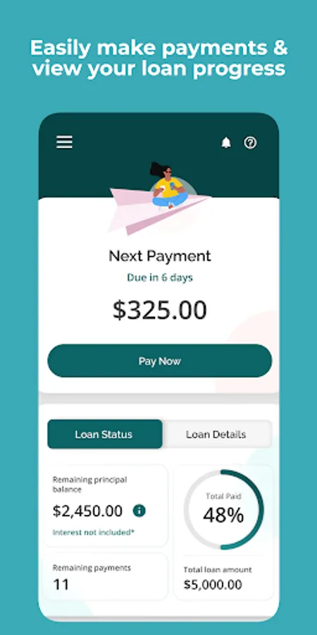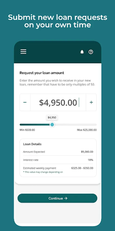 • Request a new loan and view estimated weekly payments