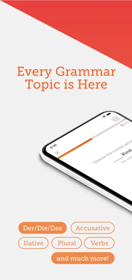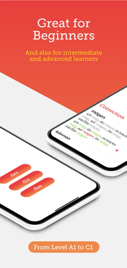 The app offers you thousands of German grammar exercises, as well as lessons and summaries of the key grammatical topics. You don’t need to take leveling tests, just pick any topic and start learning it, regardless of whether you are on A1,A2,B1,B2 or C1.