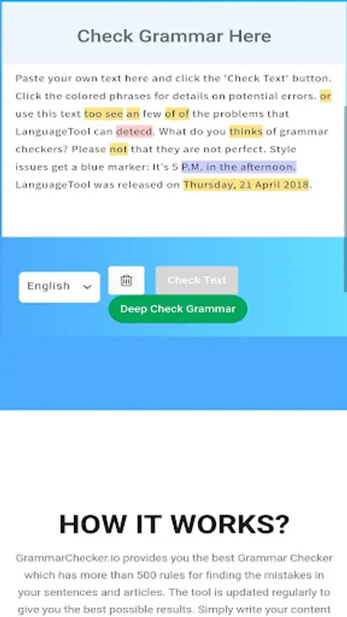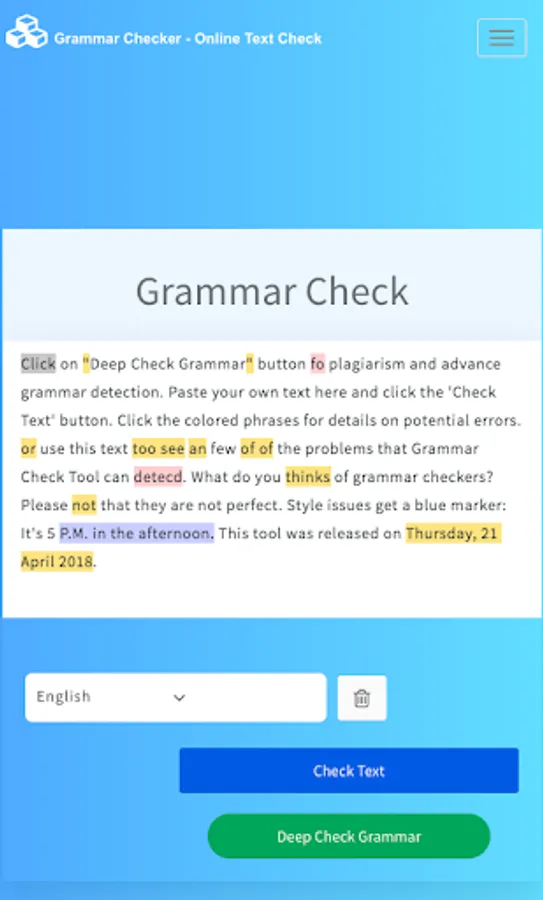 This Grammar app is designed to help you find errors in your emails, letters, essays, thesis etc. All you need is to just copy paste or type the text and just press the check text buttons to find all the mistakes.