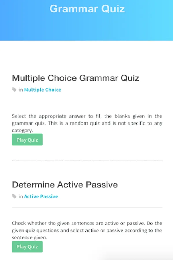Apart from the tool, you get to play Grammar Quiz which helps in improving your English. Quizzes are added almost daily so that you can keep on improving.