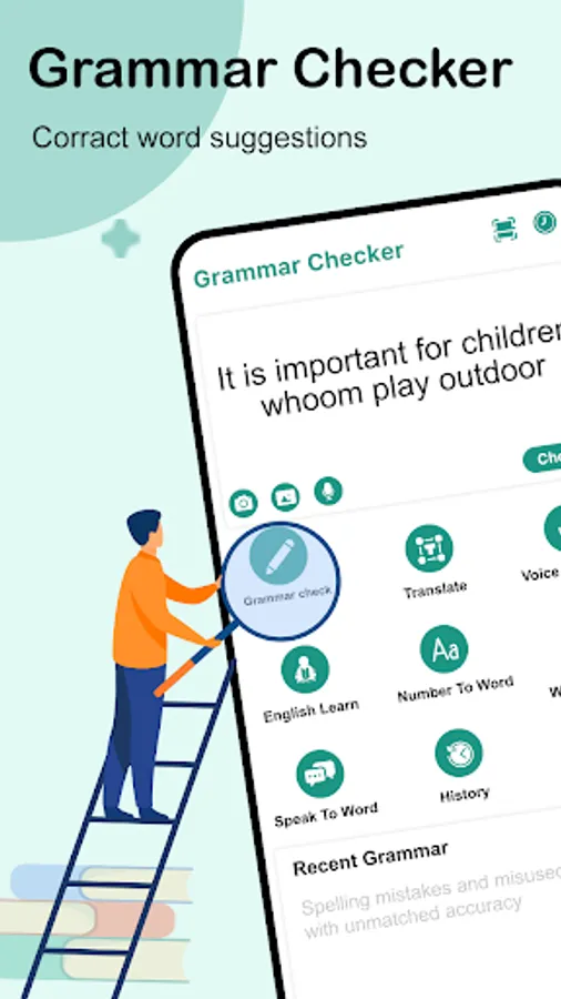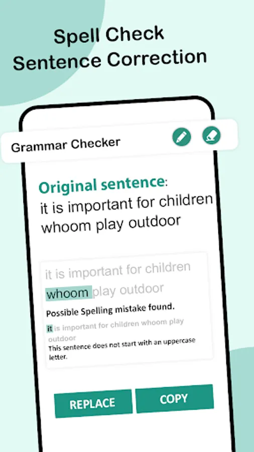 - Spellings and grammar corrections are performed run time, which let you learn from every mistake you make and improve your English writing skills