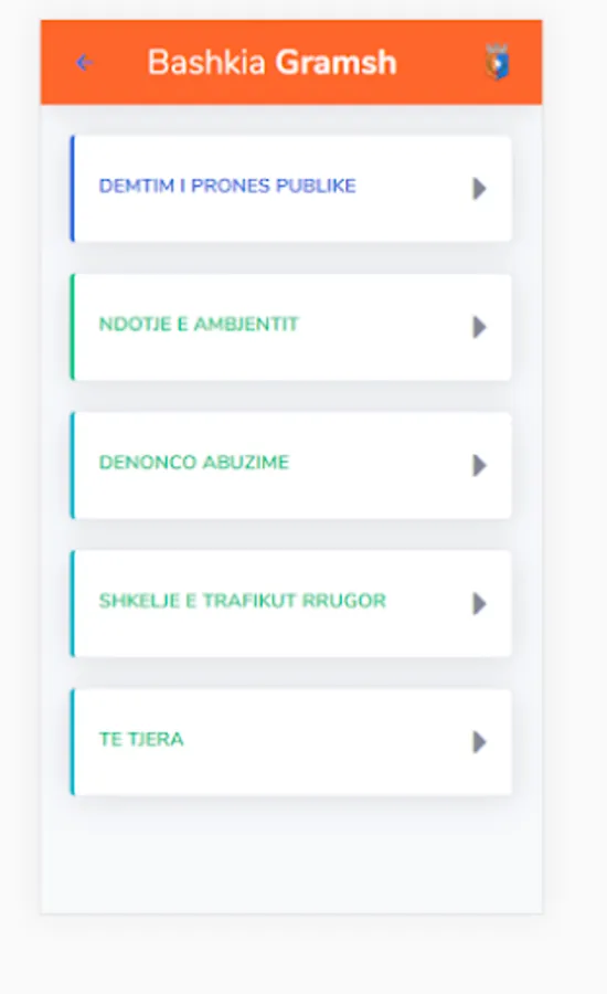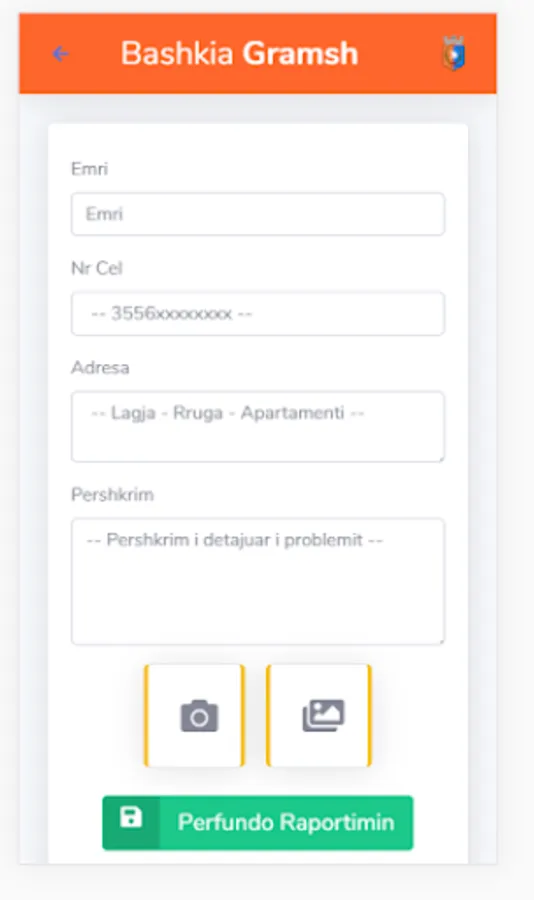 Ky aplikacion do te sherbeje per te kryer raportime te ndryshme nga te gjithe banoret e Bashkise Gramsh apo nga vizitore te cilet do te vizitojne kete bashki. Aplikacioni do te permbaje dhe foto nga sistemi i kamerave te qytetit Gramsh.