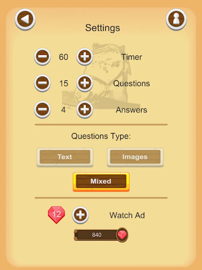 This game is available for free and it offers customizable rules to suit your individual needs. You decide how you want to play. The number of questions, answers, time to make a final decision, you may find on the Settings screen and there you can create YOUR amazing game.