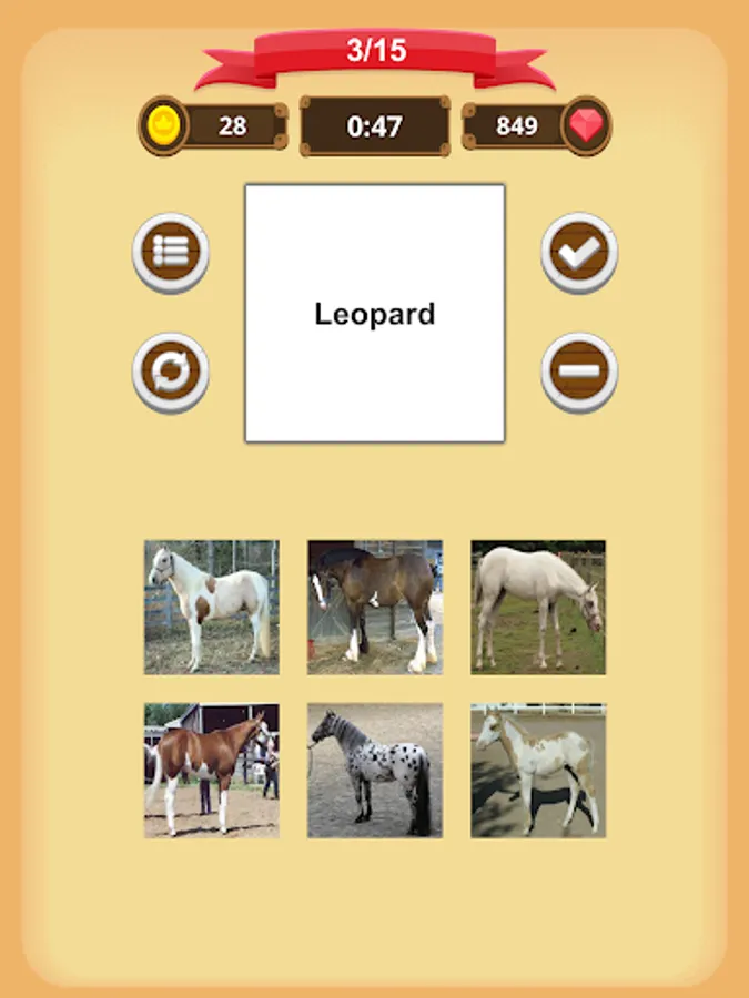 Check how much you know about such beautiful animals like horses, Climb to the top of the high score leaderboards and try to Unlock all horses hidden in the game.