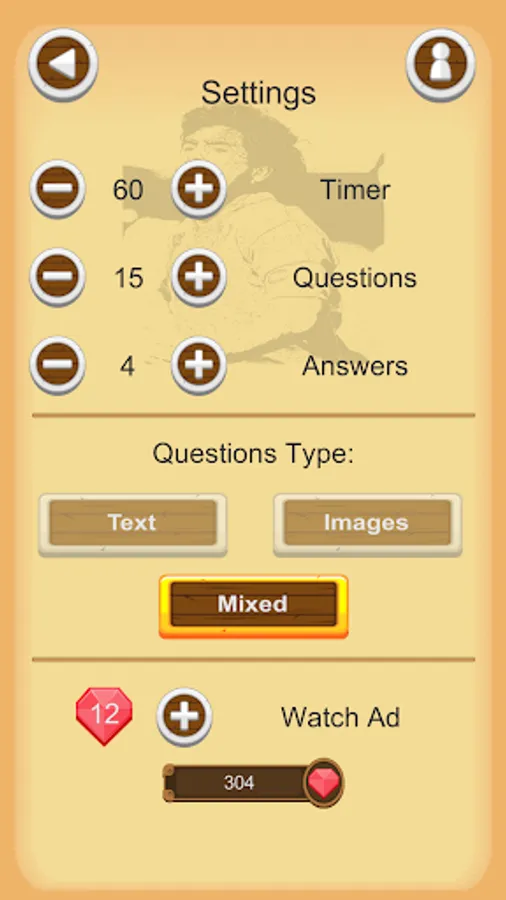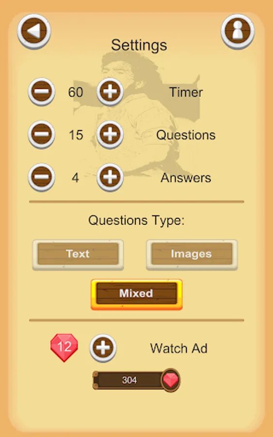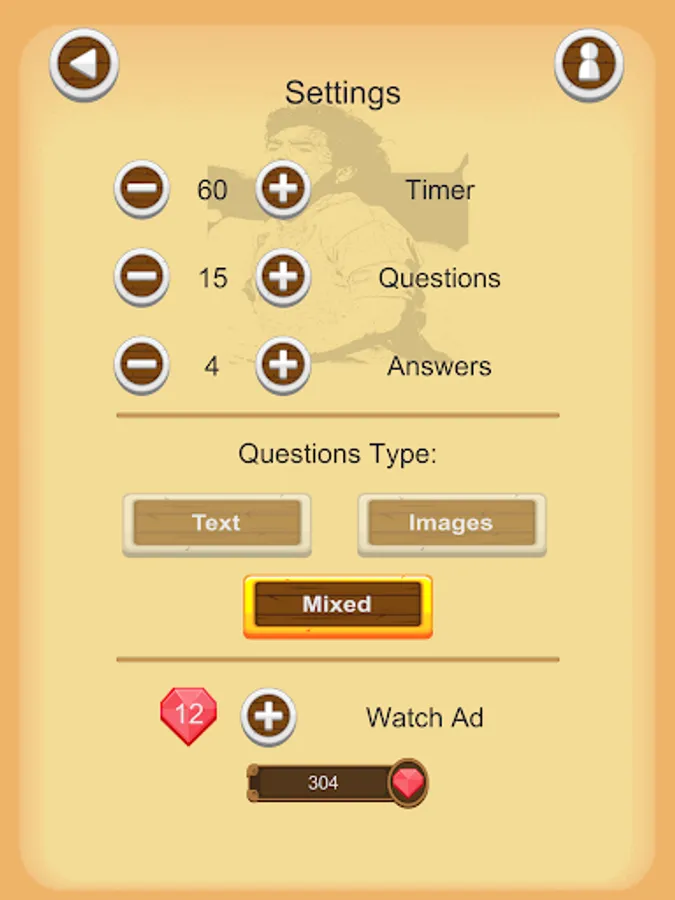 This game is available for free and it offers customizable rules to suit your individual needs. You decide how you want to play. The number of questions, answers, time to make a final decision, you may find on the Settings screen and there you can create YOUR amazing game.