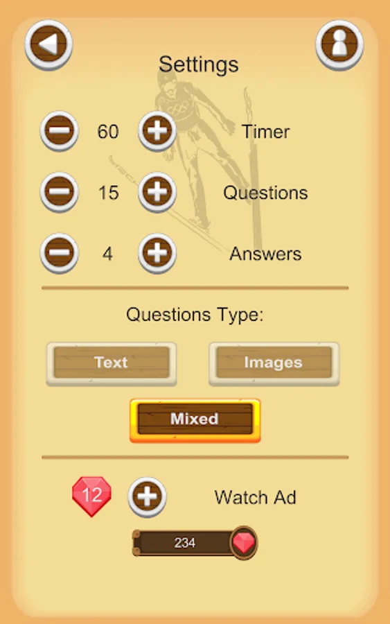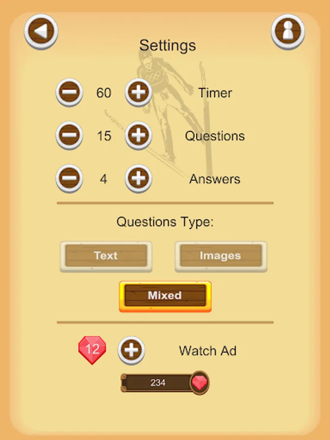 This game is available for free and it offers customizable rules to suit your individual needs. You decide how you want to play. The number of questions, answers, time to make a final decision, you may find on the Settings screen and there you can create YOUR amazing game.