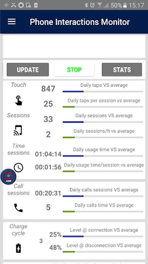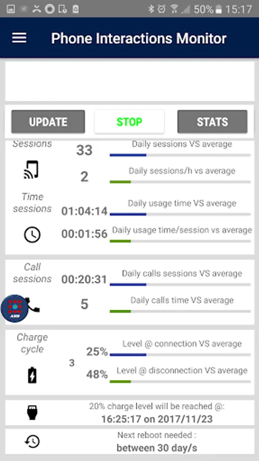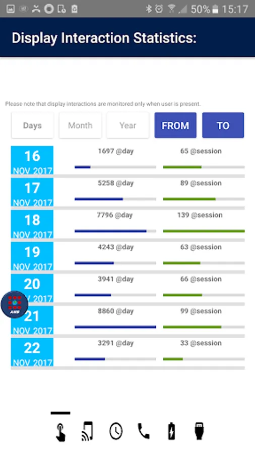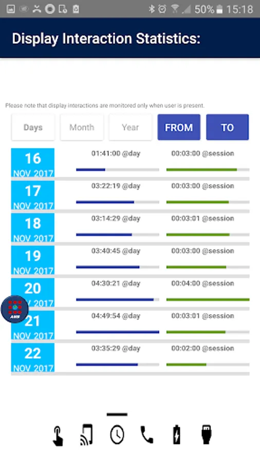 So what are you waiting for? Install and activate Phone interactions Monitor and discover day by day the real numbers behind your phone usage profile!