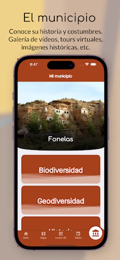 Read the QR of the beacons that you will find in the municipality from the app reader to access information about the specific point.